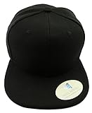 Kid's Youth Flat Bill Snapback Hat - Hip Hop Baseball Cap (Solid Black)