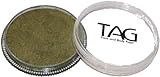 TAG Pearl Copper Face Paint is a little softer than TAGs regular paints and contain Mica for a metallic sheen. TAG Pearl Face Paint does not contain any metal. TAG Face Paint is very easy to blend, soft on the skin and does not crack or peel. Most of TAGs face painting colors are great for line work and lighter face painting colors show very well even when over darker colors. TAG facepaint has a wax base, so your face painting design flexes with movement instead of cracking, remains colorful and is comfortable to wear. TAG is a very soft creamy face paint and needs less water to activate than normal face paint. TAG face paint is hypoallergenic and made with non-toxic, skin safe ingredients. Each 32 gram TAG Pearl Copper Face Paint Container is good for 50-200 applications.