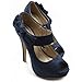 Ollio Women's Shoe Platform Open Toe High Heel Ribbon Accent Multi Color Pump ZM13909(6.5 B(M) US, Navy)