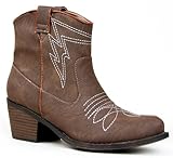 Qupid MARISKA-19 Western Cowboy Inspired Stitched Detail Stacked Heel Ankle Boot Bootie