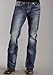 Stetson Men's Rocker Fit with Lower Rise and Slightly Fitted Thigh Jean,Medium Blue Stone Wash with White X Back Pocket Embroidery, 36x36