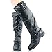 Top Moda Coco-1 Buckle Riding Knee High Boots with Back Zippers Black or Tan (9, Black)