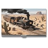 Steam Train in The Desert Business Card Holder Fashion Aluminum Alloy Flip Cover Credit Card Holder High End Professional Name Cards Case Exquisite Pocket Metal Cards Holder for Work