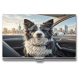 VstaDank Border Collie Dog Business Card Holder Fashion Aluminum Alloy Flip Cover Credit Card Holder High End Professional Name Cards Case Exquisite Pocket Metal Cards Holder for Work