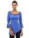 PattyBoutik Women's 3/4 Sleeve High-Low Hem Top (Blue M)