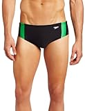 Speedo Men's Endurance+ Launch Splice Brief Swimsuit, Black/Green, 36
