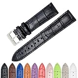 iStrap Genuine Calf Leather Watch Band Alligator Grain Padded for Men Women Color & Width (18mm,19mm, 20mm,21mm,22mm or 24mm) Gold Silver