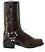 Every motorcycle enthusiast needs a pair of Dingo harness boots These men's Dingo boots feature a smooth black leather foot with leather harness under a matching 11" leather shaft. Cowboy heel. Leather lining. Single stitched welt. Snip toe profile and easy-on leather pull straps. Imported.