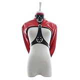 Leather Body Harness Bondage Straight Jacket Adult Costume Hand Cross Arm Guard Sleeve, Adjustable Novelty Fancy Costume Performance (Red)