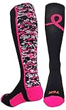 TCK Sports Breast Cancer Awareness Ribbon Over The Calf Socks, Black/Hot Pink, X-Large
