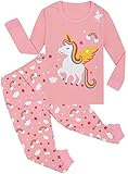 Mikrdoo Girls Pajamas Kids Pjs: 2 Piece Pink Unicorn Pajamas Girls Fashion Soft Long Sleeve Top and Pants Lovely Fall Pjs Set Size 5