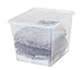IRIS 34 Quart Deep Sweater Storage Box, 10 Pack, Clear, stores notebooks, valuables, and seasonal clothing in these classic storage boxes. Snap-tight lid keeps contents secure, and clear lid and body make it easy to identify items inside. Maximize your storage space by stacking multiple units. Sold in a set of 10.