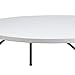 This round plastic folding table is a great option for special event planners, catering companies and restaurants.The thick, granite white tabletop is 6' in diameter, 2.125'' inches thick, and will comfortably seat up to 10 adults. Its waterproof, impact and stain resistant top has an 1100 pound static load capacity. Attractive gray powder coated legs lock securely in place while in use and fold up neatly underneath to transport and store. Non-marring floor caps protect your floor by sliding smoothly when you need to move it. This durable, easy-to-clean table is commercial rated for use in banquet halls, convention centers and at trade shows.Designed for both indoor and outdoor use, the granite white plastic folding table is a convenient option for your next home, school or business event.