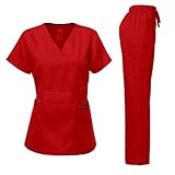 Dagacci Medical Uniform Womens and Mens Scrub Set Unisex Medical Scrub Shirt Top and Pant, Hot Pink, Large,