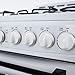 GR2011CW Finish: White Features: -Automatic electronic ignition. -See-thru glass oven door. -Oven cavity light. -Waist high broiler. -Bake / broil oven for maximum versatility. -Four sealed type burners: 1 Rapid, 2 semi-rapid, 1 simmer. Oven Capacity: -2.1 Cubic Feet. Product Type: -Free-standing. Control Type: -Knobs. Accessories Included: -Oven drawer/Storage drawer/Backsplash/Burner. Number of Ovens: -Single oven. Fuel Type: -Gas. Number of Burners: -4. Commercial Use: -Yes. Dimensions: Overall Height - Top to Bottom: -39.5". Overall Width - Side to Side: -19.75". Overall Depth - Front to Back: -40". Overall Product Weight: -104 lbs.