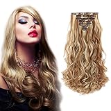 PRETTYSHOP XXL Set 8 pcs 24" Clip In Hair Extensions Full Head Hairpiece Wavy Curled Or Straight Heat-Resisting Div. Colors (brown blonde highlights curled #6H613 CES15-1)