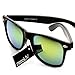 zeroUV 8025 Retro Matte Black Horned Rim Flash Colored Lens Sunglasses, Black Forest, 58mm