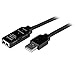 Extend the distance between a computer and a USB 2.0 device by 10 meters - The USB2AAEXT10MÂ 10m Active USB 2.0 Extension Cable offers one USB-A male connector and one USB-A female connector, and provides an active extension of USB 2.0 devices of up to 10-meters (30-feet).An all-in-one cable for overcoming distance restrictions as well as power source limitations, the active USB 2.0 extension cable incorporates bus-powered active circuitry to ensure performance beyond the length limits of standard USB cables. Up to 4 of these cables can be daisy-chained together, allowing for a total USB extension of up to 40-meters. If necessary, the USB device can be powered from a wall outlet using the Universal AC power adapter (provided with the cable).The USB2AAEXT10MÂ repeater cable supports the full USB 2.0 bandwidth of 480 Mbps, and is backed by StarTech.com's 2-year Warranty.
