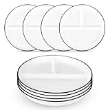 AUHUI Ceramic Divided Plates Set of 4Pcs, 8 Inch Portion Control Plate, Reusable Bariatric Plate for Adults, 3 Compartment Plates, White Dinner Plates for Balanced Meal, Microwave, Dishwasher Safe