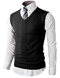 SSLR Men's Regular Fit V Neck Casual Sweater Vest (Medium, Black)