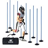 SEAOTTER Soccer Agility Poles Set, 10Pcs 6FT Adjustable Sports Trainning Speed Poles Slalom Poles with Rubber Base, Agility Training Equipment for Football, Rugby, Basketball, Indoor & Outdoor