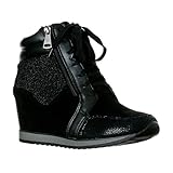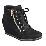 Top Moda Womens Peter-1 Fashion Wedge Sneakers,Black,8.5