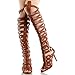 Cape Robbin Women's Elnora Peep Toe Laser Cutout Over The Knee Thigh High Back Lace Tie Boot