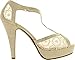 TOP Moda Hy-5 Formal Evening Party Lace Ankle T-Strap Peep Toe Stiletto High Heel Pumps,Beige,8