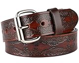This 1 3/4 inch wide tapered ariat belt by m and f western products features a great 2-tone floral embossed design. Offered in sizes 32-46.