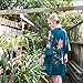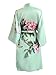 Old Shanghai Women's Print Kimono Short Robe - Floral, peony & bird- celedon