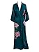 Old Shanghai Women's Kimono Robe Long - Watercolor Floral, peony & bird - teal