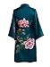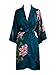 Old Shanghai Women's Print Kimono Short Robe - Floral, peony & bird- teal, One Size