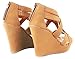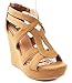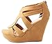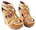 JJF Shoes Lindy-3 Tan Strappy Nubuck PU Comfort Gladiator Dress Platform High Wedge Sandals-10