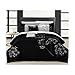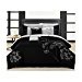 Chic Home Floral 8-Piece Embroidered Comforter Set Complete Embroidery Pattern Bed in a Bag with Bed Skirt and Decorative Pillows Shams, Queen Black