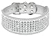 Berry Pet Rhinestones Dog Collars - 5 Rows Full Sparkly Crystal Diamonds Studded PU Leather - 2 Inch Wide -Beautiful Bling Pet Appearance for Medium & Large Dogs,15-18" White Silver