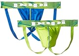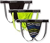 2(X)IST mens Cotton Stretch Jock Strap 3-pack thong underwear, Scotts Red/Black/Skydiver, Small US