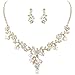 EVER FAITH Flower Leaf Necklace Earrings Set Austrian Crystal Gold-Tone - Iridescent Clear AB