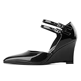 Younton High Heels Pumps for Women Pointed Toe Pumps Dressy Wedge Heel Pumps for Daily Work Mary Jane Heels 8.5 CM Black Patent Leather US Size 8.5