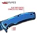 - SPECIAL FEATURES: Spring Assisted, Finger Flipper, Dual Thumb Studs, Frame Lock, Blue TiNite Coated Stainless Steel Blade, Handle and Pocket Clip.