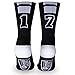 - HIGH QUALITY PERFORMANCE SOCKS! These Black athletic half cushioned crew socks deliver a secure fit every time you put them on. Our mid calf custom number socks are a favorite amongst athletes from all sports including football, basketball, lacrosse, hockey, soccer, volleyball, and more! Whether you're an all-star player or new to the team, serve up some serious style with these popular custom number socks!