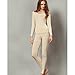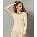 Liang Rou Women's Scoop Neck Stretch Top & Bottom Thin Thermal Underwear Set Apricot S