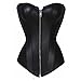Kiwi-Rata Women's Faux leather Overbust buckle Corset G-string (5XL, Zipper Plain Black)