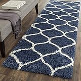 Safavieh Hudson Shag Collection SGH280C Navy and Ivory Moroccan Ogee Plush Square Area Rug (7' Square)