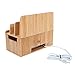 Bamboo Universal Multi Device Cord Organizer Stand and Charging Station for Smartphones, Tablets, and Laptops Includes 6-USB Port Hub Charger with Power Supply