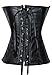 KIWI RATA Women's Punk Rock Faux Leather Buckle-up Corset Bustier Basque with G-string, Punk Black, Large