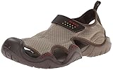 crocs Men's Swiftwater Leather Clog, Khaki/Espresso, 12 M US