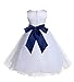 • The elegant upper bodice feature is made out of white Satin Poly. The waistline is decorated with a removable choice of color sash and flower to make this dress more elegant. The back of the dress has a zipper closure and a nice bow you can tie for a snug fit.