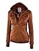 LL WJC664 Womens Faux Leather Jacket with Hoodie S CAMEL