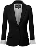 LE3NO Womens Textured 3/4 Sleeve Open Blazer Jacket, L3NWJC1196- WHITE, Medium