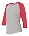 LAT Apparel Ladies 100% Cotton Baseball Jersey Tee, Heather/Red, Medium